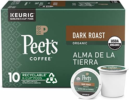 Peet's Coffee, Dark Roast K-Cup Pods for Keurig Brewers - Organic Alma de la Tierra, USDA Organic 10 Count (1 Box of 10 K-Cup Pods) Packaging May Vary